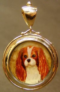 Cavalier King Charles King Charles Spaniel Portrait -14k pendant with heavy